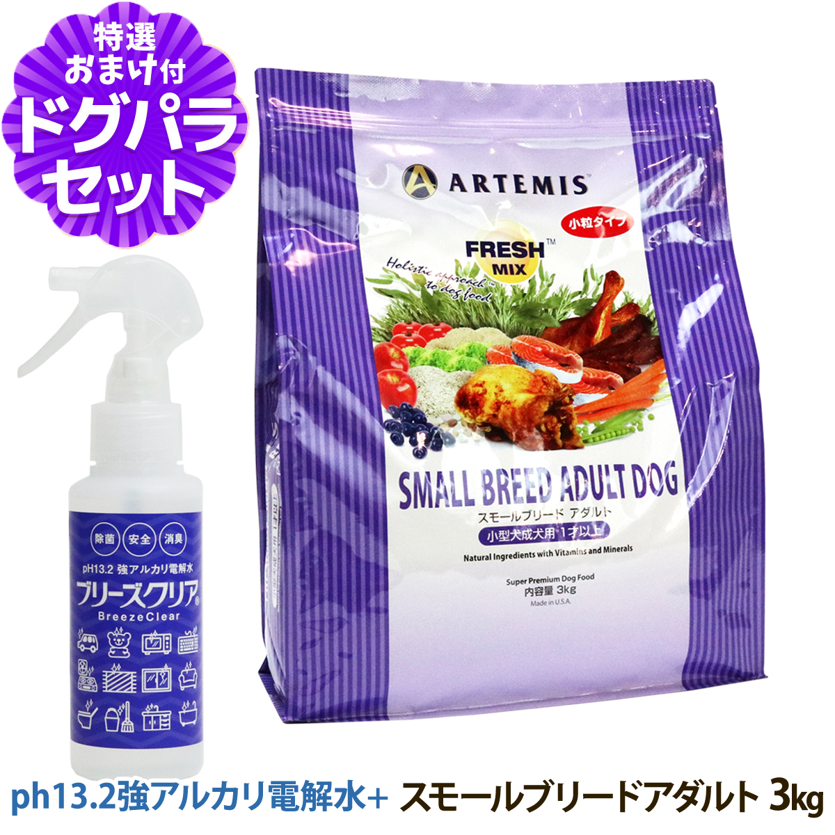 アーテミス フレッシュミックス スモールブリードアダルト 3kg+ph13.2強アルカリ電解水100mlアーテミス フレッシュミックスの解説アーテミスは世界25か国以上で愛犬家たちに愛されているアメリカ生まれの最高品質プレミアムドッグフード。時間と手間をかけて行なう独自の加工方法で新鮮さにこだわり、素材が持つ栄養とおいしさを最大限に活かしました。フレッシュミックス スモールブリードアダルトの詳細対象小型犬・成犬用スモールブリードアダルトについて・味覚が敏感な小型犬も満足できる美味しさ・私たち人間が口にできるレベルの食材使用・複数の動物性タンパク質をベストバランスで配合・必要な栄養素をあますことなく網羅・様々な抗酸化物質の働き・ペットにとって有害な物質は完全除去・栄養成分の吸収効率をあげる独自の製法・アレルギーに配慮し、小麦・大豆・とうもろこしは不使用 ¥5,830 |