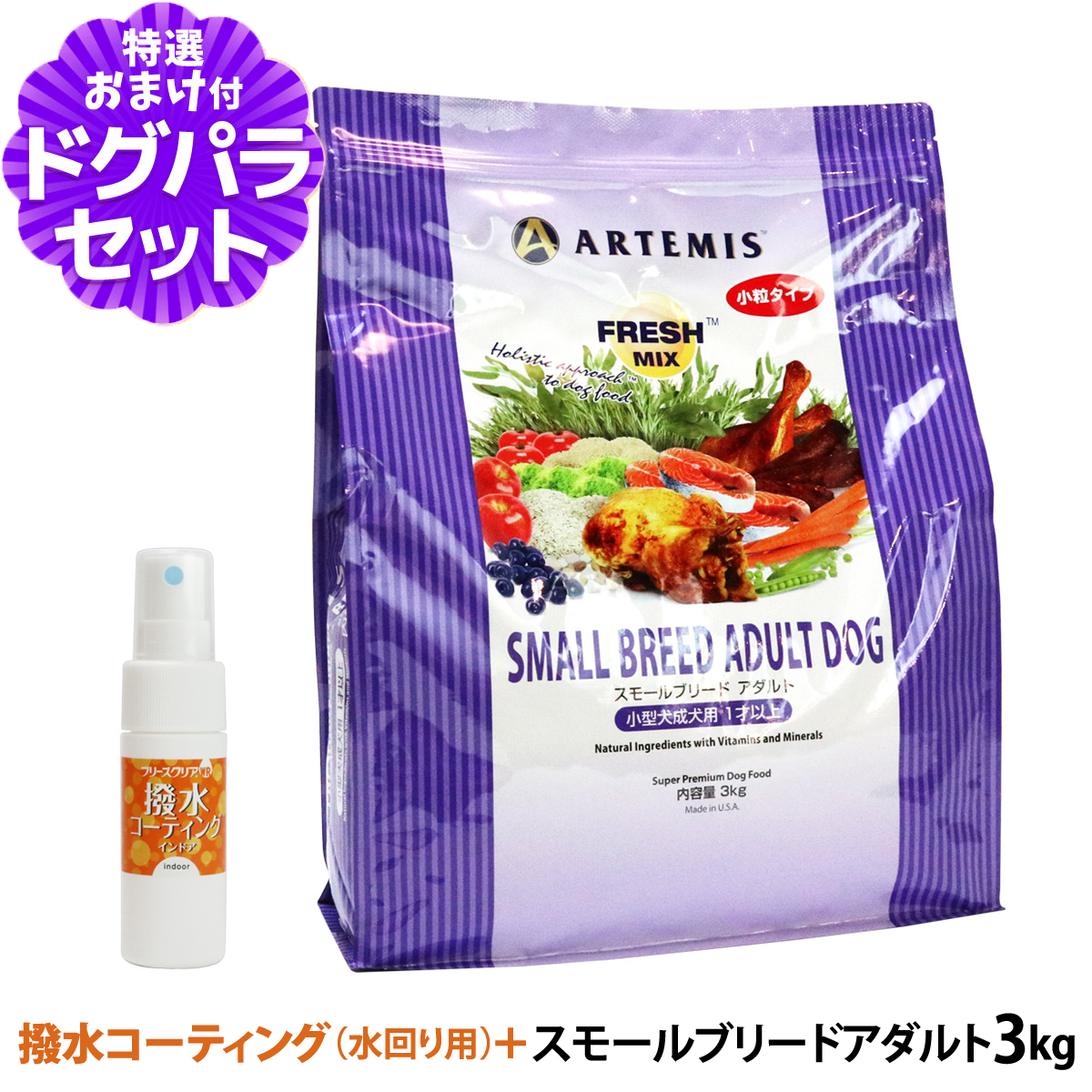 アーテミス フレッシュミックス スモールブリードアダルト 3kg+撥水コーティングインドア(水回り用) 20mlアーテミス フレッシュミックスの解説アーテミスは世界25か国以上で愛犬家たちに愛されているアメリカ生まれの最高品質プレミアムドッグフード。時間と手間をかけて行なう独自の加工方法で新鮮さにこだわり、素材が持つ栄養とおいしさを最大限に活かしました。フレッシュミックス スモールブリードアダルトの詳細対象小型犬・成犬用スモールブリードアダルトについて・味覚が敏感な小型犬も満足できる美味しさ・私たち人間が口にできるレベルの食材使用・複数の動物性タンパク質をベストバランスで配合・必要な栄養素をあますことなく網羅・様々な抗酸化物質の働き・ペットにとって有害な物質は完全除去・栄養成分の吸収効率をあげる独自の製法・アレルギーに配慮し、小麦・大豆・とうもろこしは不使用 ¥5,830 |