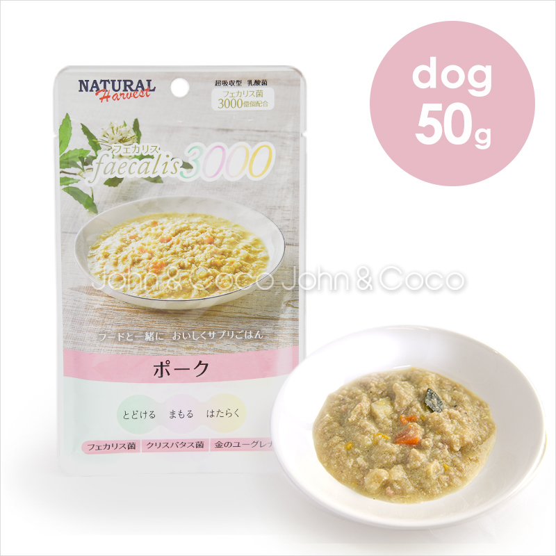 ナチュラルハーベスト フェカリス3000 ポーク 50g 犬 ドッグフード ウェットフード 国産 トッピング レトルト 豚肉成犬用ウエットフード(アダルトメンテナンス総合栄養食) ¥495 |