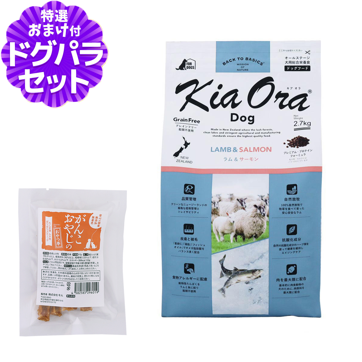 キアオラ ドッグフード ラム&サーモン 2.7kg+国産たじま鶏ジャーキー(小サイズ) 犬 ドック グレインフリー 羊 穀物不使用 パピー アダルト シニア 全年齢ラム&サーモンについてラムには脂肪燃焼効果が期待できるLカルニチンが含まれており、ヘルシーなお肉と言えます。KiaOraが使用するラムは、自然放牧で育った生後12ヶ月未満の幼羊で、ビタミンB1、B2、Eが豊富で、栄養がスムーズに変換されるのを助けます。 その他 直射日光の当たらない、湿気の少ない涼しいところに保管してください。また、開封後はしっかりと密封して、約1ヶ月程度で使いきっていただくことをお奨めします。※当店の商品は全て正規品です。安心してお買い求めください。■パッケージ・内容成分などは予告なく変更になることがございます。ご了承くださいませ。 犬/ドッグ/フード/ドック/全年齢/パピー/子犬/仔犬/アダルト/成犬/高齢犬/シニア/キアオラ/KiaOra/羊/鮭/アレルギー対応/穀物不使用/グレインフリー/ペット ¥8,580 |