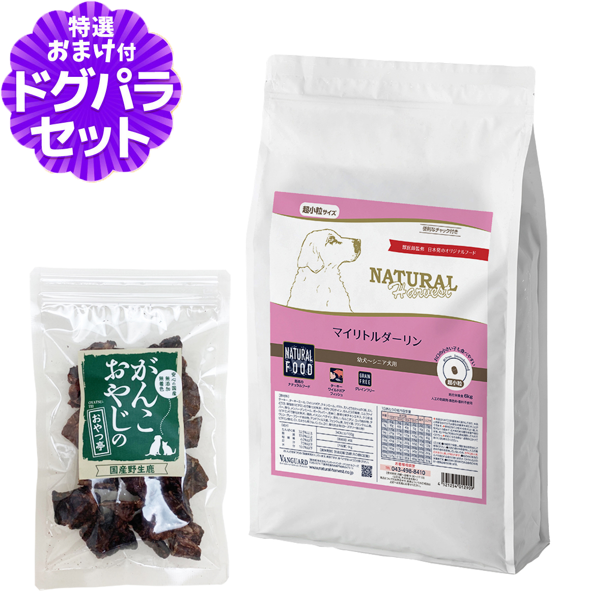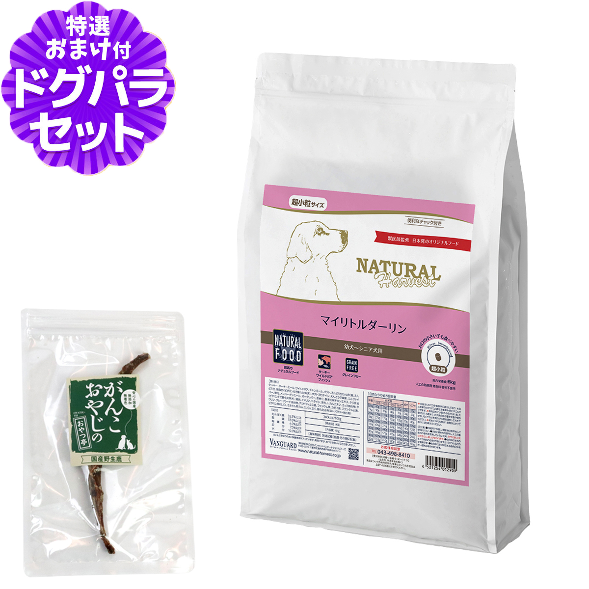 (順次パッケージ変更)ナチュラルハーベスト マイリトルダーリン 1.1kg×2袋+国産鹿肉ジャーキー(お試しサイズ)ナチュラルハーベストの解説ナチュラルハーベストは、日本特有の気候や環境を考えて、日本に住む犬の為に設計された日本発オリジナルドッグフード。遺伝子組み換え作物を使用せず、アレルギーになりにくいとされる肉類をできるだけ主要たんぱく質にするなど、栄養学に基づいて原材料を取り入れているプレミアムドッグフードです。ナチュラルハーベスト マイリトルダーリン の詳細対象幼犬・成犬・シニア犬用ナチュラルハーベスト プライムフォーミュラ マイリトルダーリン について■最高のナチュラルフード栄養バランスは本来、様々な食材を組み合わせることで整います。微量なビタミンやミネラルも出来る限り添加せず、食材のもつ栄養素で作り上げた総合栄養食です。■ターキー・ワイルドボア・フィッシュ動物系のワイルドボア(イノシシ)とポーク、家禽系のターキーとチキン、魚系のメンハーデン、種類の異なるたんぱく質を組み合わせることでアミノ酸バランスの向上と飽きのこないおいしさに。■グレインフリー様々な炭水化物の中でも消化性の高いポテトを採用しました。穀類の消化が苦手な子に配慮したグレインフリーフードです。 ¥7,920 |