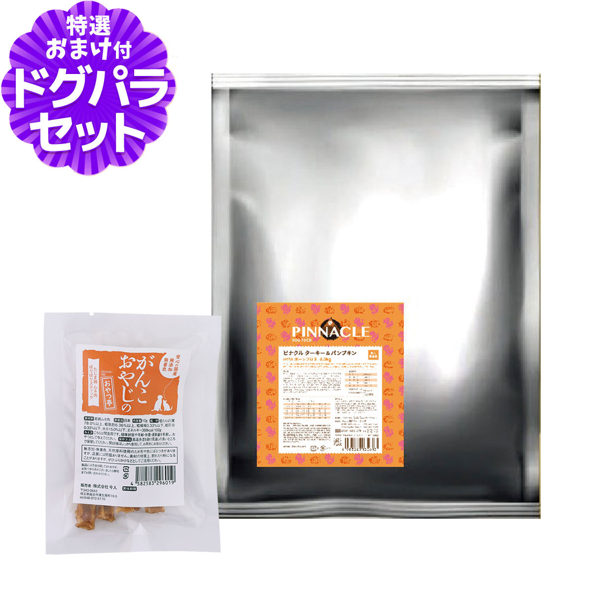 [メーカー在庫限りで販売終了]ピナクル ターキー&パンプキン 4.0kg+国産たじま鶏ジャーキー(小サイズ)ピナクルの解説アレルギー対応プレミアムドッグフード。ピナクル ターキー&パンプキン の詳細対象全年齢 全犬種用ターキー&パンプキンについて低アレルゲンレシピは、ボーンブロスを配合。愛犬の腸活に! ボーンブロス「ボーン=骨」「ブロス=だし」は、骨をじっくりと時間をかけて煮出すことで、アミノ酸をはじめ、コラーゲン、ヒアルロン酸、カルシウムなどの栄養素が凝縮されたスーパースープ。たん白質が消化しやすいアミノの状態まで分解されているので愛犬の腸に負担をかけず、健康な腸内環境を維持し免疫力を保ちます。より美味しく、より優しく、愛犬の美と健康を応援します。消化しやすいタンパク源であるターキーを使用。風味豊かなターキーの生肉を使用することで抜群の嗜好性。豊富のアミノ酸源。全ての愛犬たちが健康な体を維持するために必要な食材の比率を考えています。その他※当店の商品は全て正規品です。安心してお買い求めください。ピナクル/PINNACLE/小分け/ドッグフード/犬/ドッグ/グレインフリー/ターキー/七面鳥/オールステージ/アメリカ ¥8,200 |