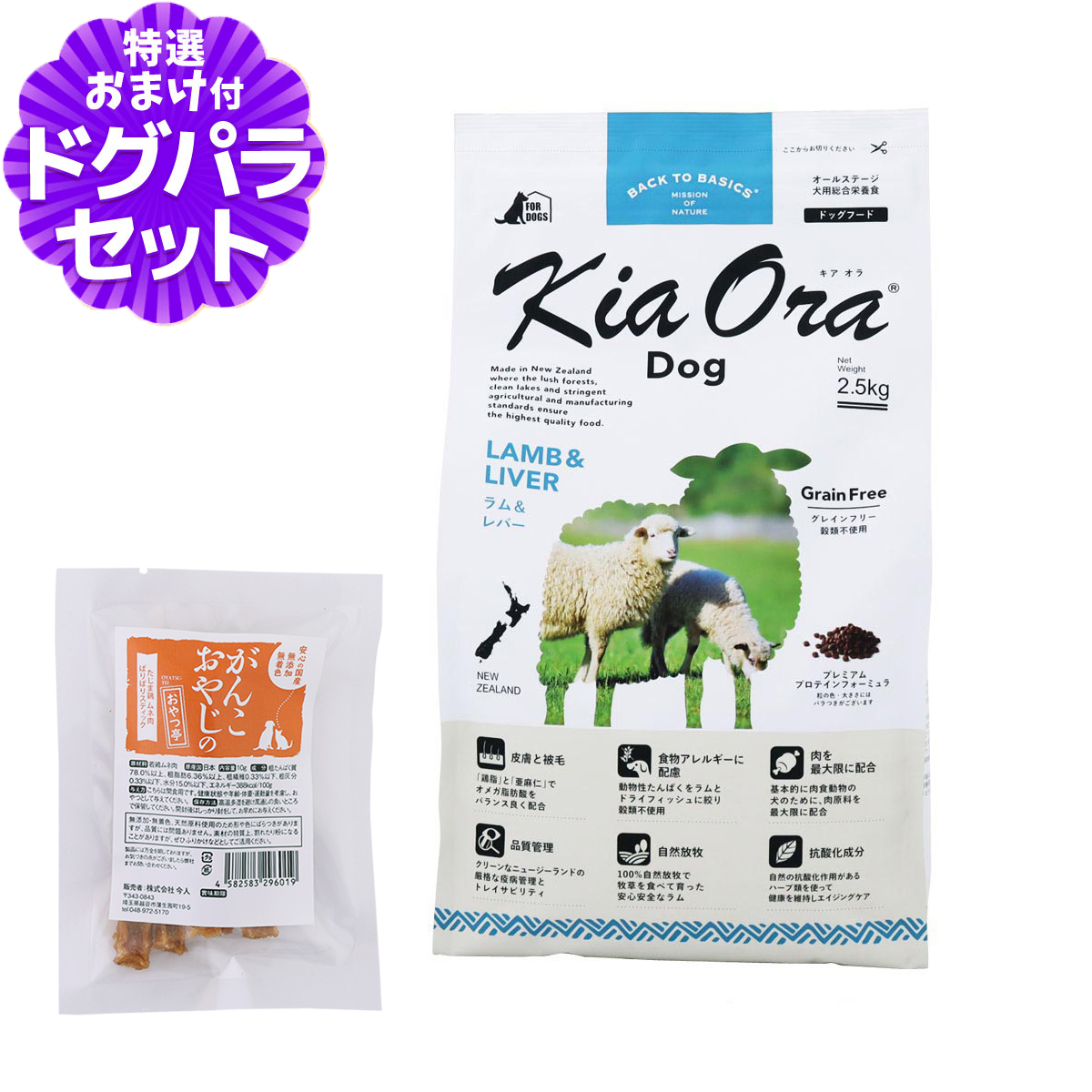 キアオラ ドッグフード ラム&レバー 2.5kg+国産鹿肉ジャーキー(お試しサイズ) 犬 ドック グレインフリー 全年齢ラム&レバーについてラムには脂肪燃焼効果が期待できるLカルニチンが含まれており、ヘルシーなお肉と言えます。KiaOraが使用するラムは、自然放牧で育った生後12ヶ月未満の幼羊で、ビタミンB1、B2、Eが豊富で、栄養がスムーズに変換されるのを助けます。 その他 直射日光の当たらない、湿気の少ない涼しいところに保管してください。また、開封後はしっかりと密封して、約1ヶ月程度で使いきっていただくことをお奨めします。※当店の商品は全て正規品です。安心してお買い求めください。■パッケージ・内容成分などは予告なく変更になることがございます。ご了承くださいませ。 犬/ドッグ/フード/ドック/全年齢/パピー/子犬/仔犬/アダルト/成犬/高齢犬/シニア/キアオラ/KiaOra/羊/アレルギー対応/穀物不使用/グレインフリー/ペット ¥8,360 |