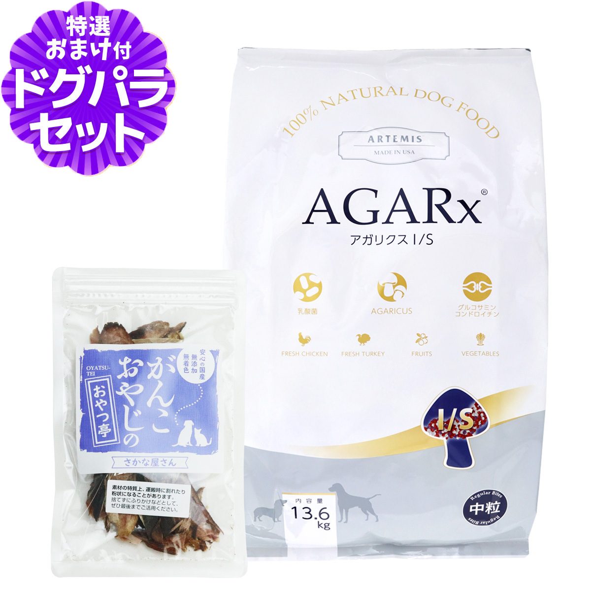 アーテミス アガリクスI/S 中粒 13.6kg +国産無添加さかなのおやつ犬が本来持っている免疫力・自己治癒力を大切に考えたプレミアムフードです。話題のアガリクス茸を配合。食生活からも愛犬の健康を考えている方にお薦めの逸品です。アガリクス茸とは人間用のサプリメントでも知られている「アガリクス茸」にはビタミン・ミネラル・酵素など、実に多くの栄養成分が含まれています。 βグルカンを多く含み免疫力や体内の老廃物の吸着排出などが注目されています。EF-2001乳酸菌とは日本はもちろん国際的にも高く評価されている最高乳酸菌! 正式名を「エンテロコッカスフェカリスEF-2001」といいます。 乳酸菌の一種で、生菌ではなく死菌にすることで活性率を高めるという画期的な研究で日本はもちろん国際的にも評価されています。ご注意アーテミスのすべての商品にはエア抜きのため、袋の数箇所に直径1mmほどの穴が開いています。メーカーで製造時に開けているものですので、商品不良ではありません。どうぞ安心してお使いいただきたく、ご理解をいただけますようお願いいたします。中粒/チキン/犬/幼犬/仔犬/パピー/子犬/成犬/アダルト/高齢犬/シニア/老犬 ¥18,810 |