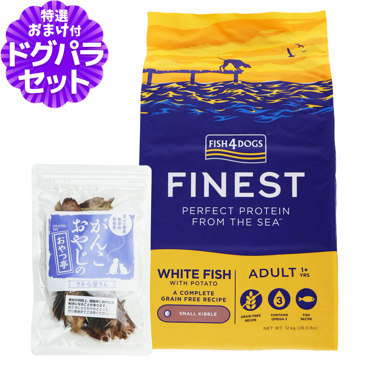 フィッシュ4ドッグ ファイネスト オーシャンホワイトフィッシュ 小粒 12kg+国産無添加さかなのおやつ白身魚が主原料、お腹が弱い仔におすすめ。栄養価が高く消化吸収に優れたオーシャンホワイトフィッシュを主原料とした成犬からシニア犬までご使用いただけるコンプリートドッグフードです。・魚は飽和脂肪酸が少なく、高タンパク低糖分で消化吸収に優れます。・魚由来のオメガ3およびオメガ6をバランスよく豊富に摂取することが可能・穀物アレルギーに考慮し、ポテトとエンドウ(低GI)を使用・魚の身と小骨だけを使用・ポテトとエンドウを使用することにより、バランスの取れたグリセミック指数(=GI値)を供給でき、エネルギー吸収が非常に効率的※当店の商品は全て正規品です。安心してお買い求めください。■パッケージ・内容成分などは予告なく変更になることがございます。ご了承くださいませ。犬/ドッグ/フード/ドック/穀物不使用/グレインフリー/穀物アレルギー/シンプル/白身魚/成犬/アダルト/高齢犬/シニア/低GI/オメガ/FISH4DOGS ¥21,780 |