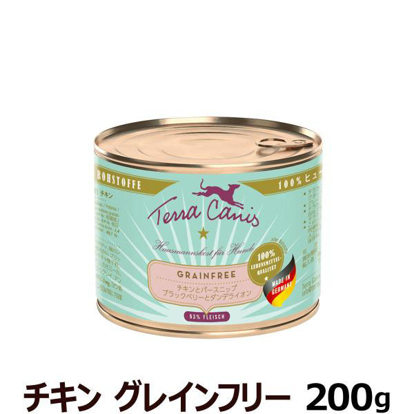 テラカニス グレインフリー チキン缶 200g Terra Canis 犬 ウエット 穀物不使用テラカニス グレインフリーの解説グレインフリーは穀物フリー・ラクトフリー(乳製品不使用)のドッグフードです。すべての成犬に適していますが、特に穀物や乳製品にアレルギー反応を持つ愛犬に最適です。本製品は獣医師の監修のもと、ヒューマングレード(人間用食品)の原材料のみを使用し、合成添加物は一切使用していません。新鮮な筋肉や心臓、レバーなどの「品質の高い内臓」に加え、野菜・果物・ハーブなど20種類以上の健康素材が、愛犬の健康をしっかりとサポートします。テラカニス グレインフリー チキン缶の詳細対象成犬用テラカニス グレインフリー チキン缶について・肉の含有量は 65%、野菜・果物・ハーブ類を 32% 使用。・穀物や乳製品の食物アレルギー、消化吸収に配慮したメニュー。その他■パッケージ・内容成分などは予告なく変更になることがございます。ご了承くださいませ。※当店の商品は全て正規品です。安心してお買い求めください。ドッグ/ドック/テラカニス/グレインフリー/ウエット/コンプリートフード/グレインフリー/ヒューマングレード/缶/缶詰/ウェットフード/Terra Canis/鶏/チキン ¥968 |