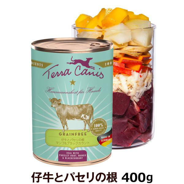 テラカニス グレインフリー 仔牛肉缶 400g Terra Canis 犬 ウエット 穀物不使用テラカニス グレインフリーの解説グレインフリーは穀物フリー・ラクトフリー(乳製品不使用)のドッグフードです。すべての成犬に適していますが、特に穀物や乳製品にアレルギー反応を持つ愛犬に最適です。本製品は獣医師の監修のもと、ヒューマングレード(人間用食品)の原材料のみを使用し、合成添加物は一切使用していません。新鮮な筋肉や心臓、レバーなどの「品質の高い内臓」に加え、野菜・果物・ハーブなど20種類以上の健康素材が、愛犬の健康をしっかりとサポートします。テラカニス グレインフリー 仔牛肉缶の詳細対象成犬用テラカニス グレインフリー 仔牛肉缶について・肉の含有量は 60%、野菜・果物・ハーブ類を 36% 使用。・穀物や乳製品の食物アレルギー、消化吸収に配慮したメニュー。その他■パッケージ・内容成分などは予告なく変更になることがございます。ご了承くださいませ。※当店の商品は全て正規品です。安心してお買い求めください。ドッグ/ドック/テラカニス/グレインフリー/ウエット/コンプリートフード/グレインフリー/ヒューマングレード/缶/缶詰/ウェットフード/Terra Canis/牛/ビーフ ¥1,408 |