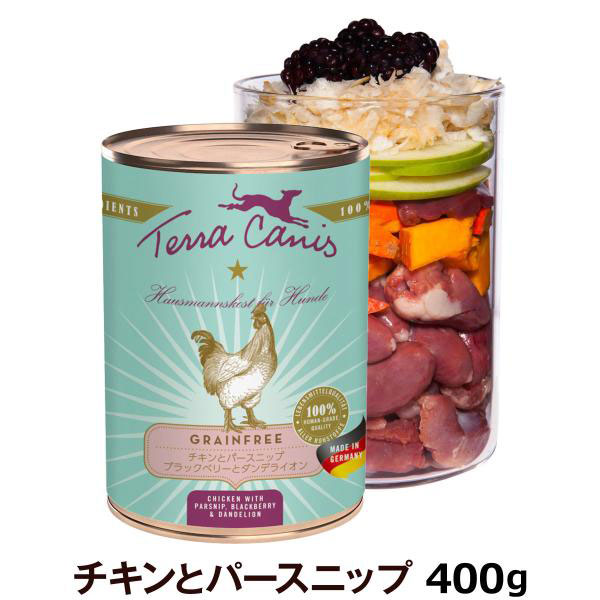 テラカニス グレインフリー チキン缶 400g Terra Canis 犬 ウエット 穀物不使用テラカニス グレインフリーの解説グレインフリーは穀物フリー・ラクトフリー(乳製品不使用)のドッグフードです。すべての成犬に適していますが、特に穀物や乳製品にアレルギー反応を持つ愛犬に最適です。本製品は獣医師の監修のもと、ヒューマングレード(人間用食品)の原材料のみを使用し、合成添加物は一切使用していません。新鮮な筋肉や心臓、レバーなどの「品質の高い内臓」に加え、野菜・果物・ハーブなど20種類以上の健康素材が、愛犬の健康をしっかりとサポートします。テラカニス グレインフリー チキン缶の詳細対象成犬用テラカニス グレインフリー チキン缶について・肉の含有量は 65%、野菜・果物・ハーブ類を 32% 使用。・穀物や乳製品の食物アレルギー、消化吸収に配慮したメニュー。その他■パッケージ・内容成分などは予告なく変更になることがございます。ご了承くださいませ。※当店の商品は全て正規品です。安心してお買い求めください。ドッグ/ドック/テラカニス/グレインフリー/ウエット/コンプリートフード/グレインフリー/ヒューマングレード/缶/缶詰/ウェットフード/Terra Canis/鶏/チキン ¥1,408 |