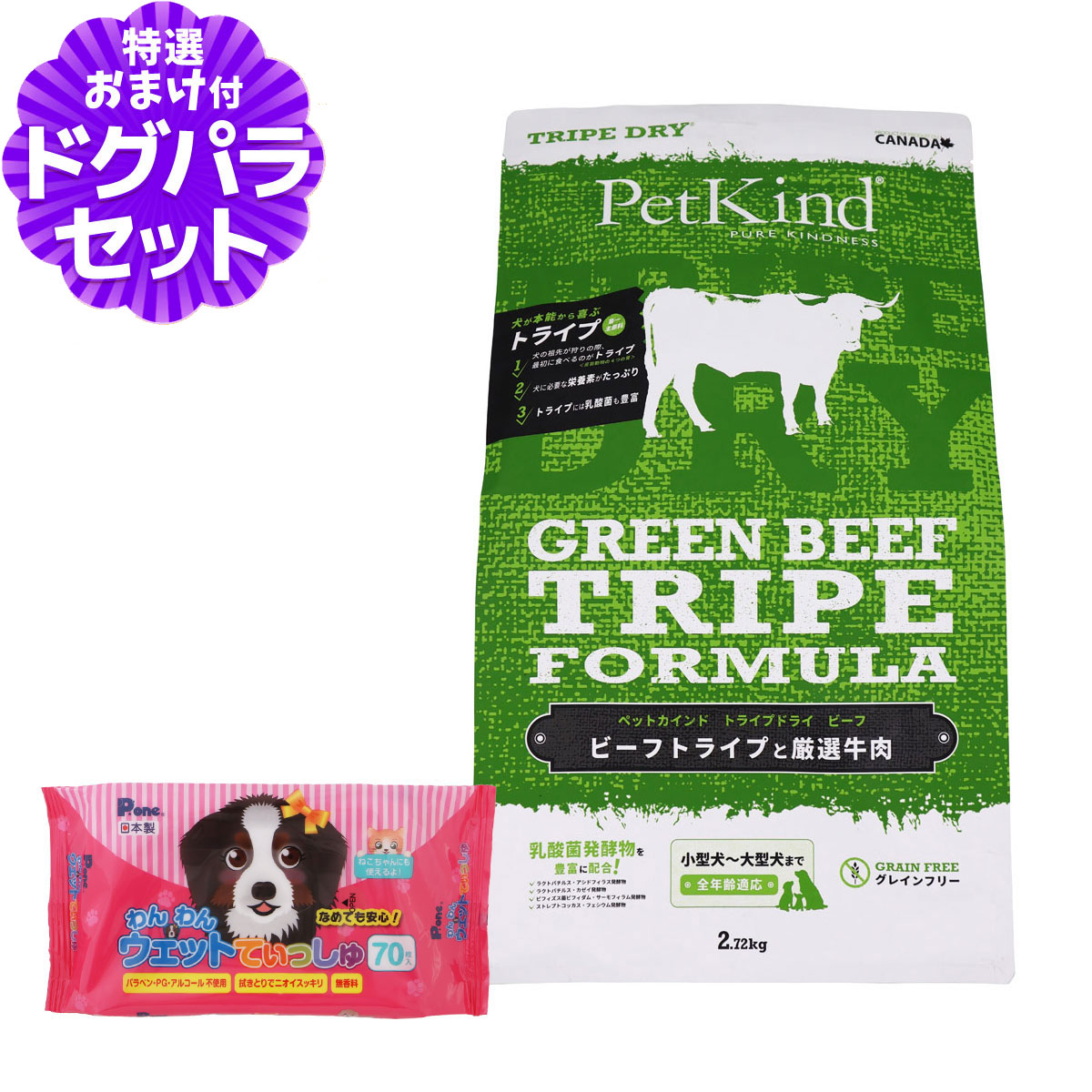 ペットカインド トライプドライ ドッグフード グリーンビーフトライプ 2.72kg+わんわんウエットてぃっしゅ1個カナダ産のグリーンビーフトライプを第一主原料に、新鮮な牛肉、鶏肉を贅沢に使用しました。 嗜好性抜群のトライプドライシリーズの中でも、最も安定した食いつきで人気の商品です。 ¥6,380 |
