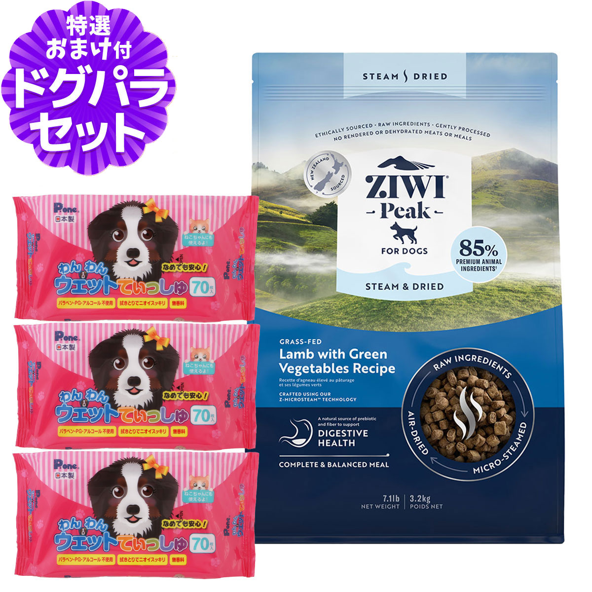ZiwiPeak ジウィピーク スチーム&ドライ・ドッグフード グラスフェッドラム with グリーンベジタブルレシピ 3.2kg+わんわんウエットてぃっしゅ 3個対象全犬種・全年齢用グラスフェッドラム with グリーンベジタブルレシピについて・ニュージーランドの緑豊かな牧草地で倫理的な方法で調達されたラム生肉と、消化器官の健康維持をサポートするホウレン草、ケール、サヤインゲンとチコリルートのブレンドを使用して作られています。・サクサク食感のおいしい一口サイズ。・乾燥肉やレンダリング肉は一切使用していません。・消化器官の健康維持をサポートするプレバイオティクスと繊維を配合しています。その他■パッケージ・内容成分などは予告なく変更になることがございます。ご了承くださいませ。※当店の商品は全て正規品です。安心してお買い求めください。リン/カルシウム/オメガ3脂肪酸/グルコサミン/コンドロイチン/イヌリン/犬/ドッグフード/ドライフード/羊/子犬/成犬/高齢犬/シニア/パピー ¥24,310 |