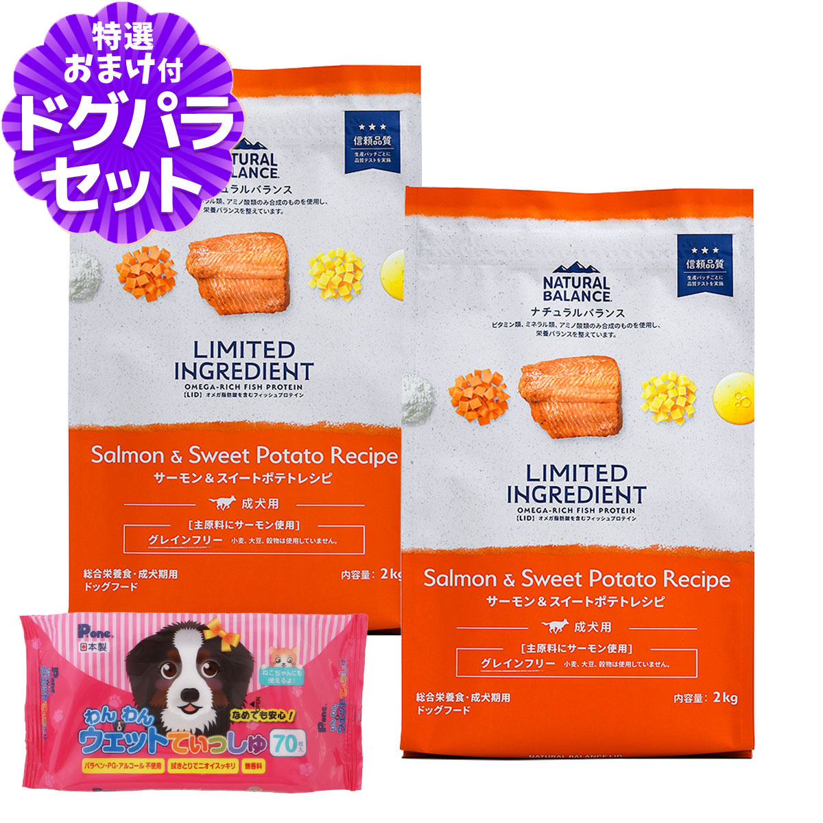 ナチュラルバランス LID グレインフリー 成犬用 スイートポテト&バイソン 2kg×2袋+わんわんウエットてぃっしゅ 1個 ドッグフード 犬 ドライ バイソンナチュラルバランスの解説栄養バランスや品質にこだわったペットフードをアメリカから日本のご家庭へLID RESERVE 成犬用 スイートポテト&バイソンレシピの詳細対象成犬用スイートポテト&バイソンレシピについて・動物性たんぱく質源に、バイソンのみを使用・消化性に優れたバイソンの肉は良質なたんぱく質源であり、牛肉と比べアレルゲンになりにくいといわれる食材です・スイートポテトやポテトに含まれる食物繊維が善玉菌の栄養源となり、腸内細菌叢を整えて健康的な消化吸収の維持を助けます。・穀物不使用・グレインフリーその他■パッケージ・内容成分などは予告なく変更になることがございます。ご了承くださいませ。※当店の商品は全て正規品です。安心してお買い求めください。犬/ドッグフード/バイソン/穀物不使用/グレインフリー/アレルギー/低アレルゲン/NATURAL BALANCE/LIMITED INGREDIENT ¥12,998 |