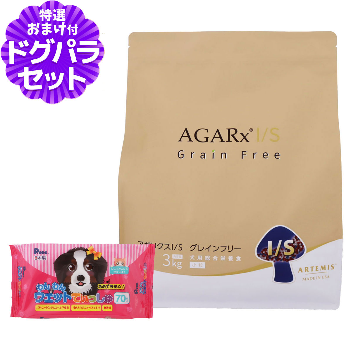 アーテミス アガリクスI/S グレインフリー 小粒 3kg+わんわんウエットてぃっしゅ1個犬が本来持っている免疫力・自己治癒力を大切に考えたプレミアムフードです。話題のアガリクス茸を配合。グレインフリー(穀物不使用)、タンパク質28%、小粒タイプの ドッグフードです。穀物アレルギーが気になる犬にぜひ一度お試しください。HJ1乳酸菌、グルコサミン、コンドロイチンも配合。 ¥6,930 |