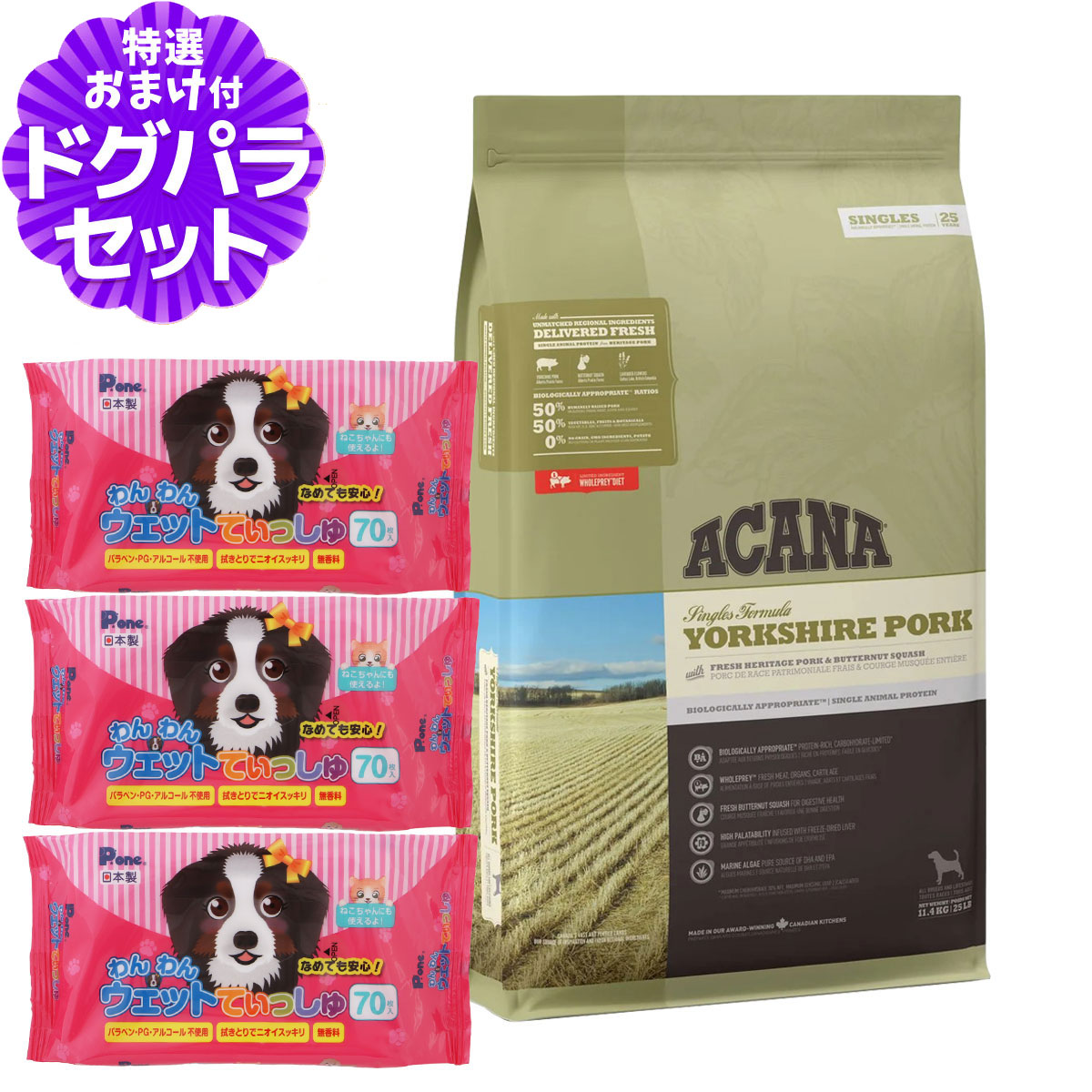 アカナ ヨークシャポーク 11.4kg+わんわんウエットてぃっしゅ 3個アカナの解説カナダの豊かな自然が育んだ、地元産新鮮原材料を使用した生物学的に適正なドッグフードを製造していますアカナの詳細アカナのコンセプト・小麦、トウモロコシ、グルテン不使用・低炭水化物。・肉含有量・全体のバランスが取れた成分構成果物、野菜、植物が健康促進上で重要な栄養素と天然酸化防止剤になります。アカナ製品にはマリゴールド、昆布、クランベリー、チコリー、トマト、サツマイモ、ニンジン、ほうれん草が含まれております。・世界最高品質の原材料使用カナダの農場で生産される新鮮な農産物は大変品質が高いものです。アカナ製品には穀類で育った鶏肉、新鮮卵、蒸しオーツ、ポテト、ひまわり、キャノーラなど数多くのアルバータ産原材料を使用しております。原産国カナダアカナ ドッグフード 低アレルゲン 低炭水化物 ペット フード おすすめ ドックフード ドライ 犬 ¥22,770 |