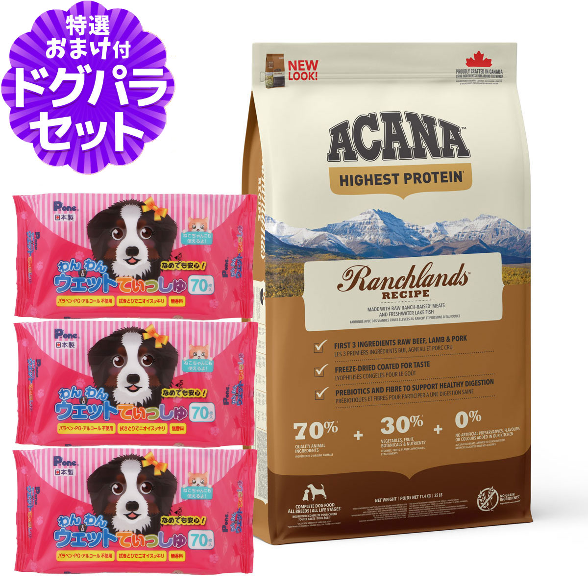 アカナ ランチランド 11.4kg+わんわんウエットてぃっしゅ 3個アカナの解説カナダの豊かな自然が育んだ、地元産新鮮原材料を使用した生物学的に適正なドッグフードを製造していますアカナの詳細アカナのコンセプト・小麦、トウモロコシ、グルテン不使用・低炭水化物。・肉含有量・全体のバランスが取れた成分構成果物、野菜、植物が健康促進上で重要な栄養素と天然酸化防止剤になります。アカナ製品にはマリゴールド、昆布、クランベリー、チコリー、トマト、サツマイモ、ニンジン、ほうれん草が含まれております。・世界最高品質の原材料使用カナダの農場で生産される新鮮な農産物は大変品質が高いものです。アカナ製品には穀類で育った鶏肉、新鮮卵、蒸しオーツ、ポテト、ひまわり、キャノーラなど数多くのアルバータ産原材料を使用しております。原産国カナダアカナ ドッグフード 低アレルゲン 低炭水化物 ペット フード おすすめ ドックフード ドライ 犬 ¥22,770 |