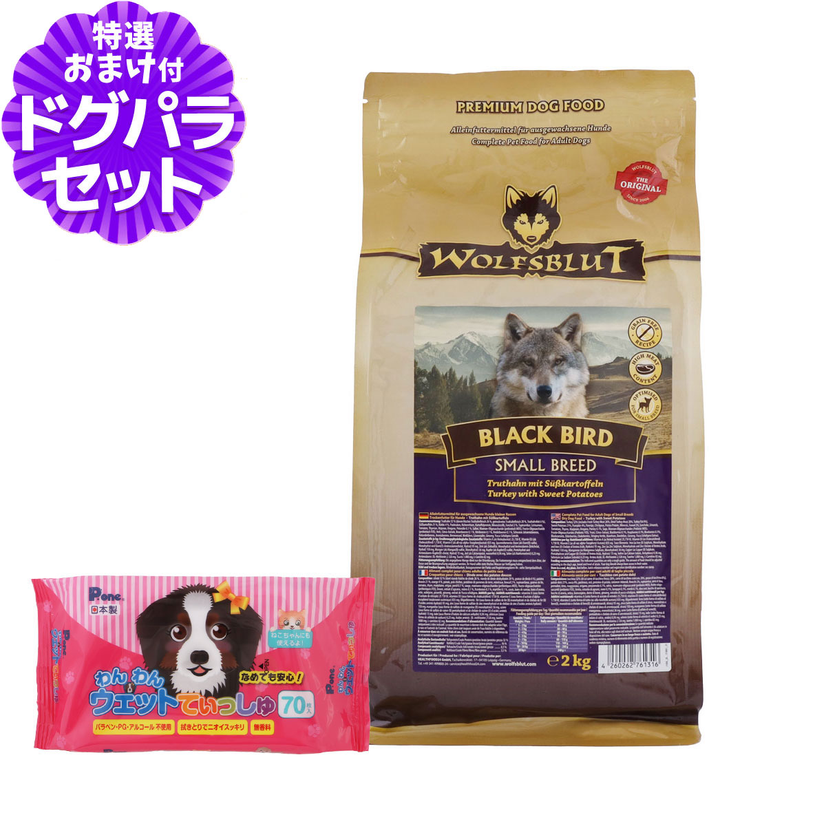 (在庫限りで販売終了)ウルフブラット スモールブリード ブラックバード (ターキーとスイートポテト)2kg+わんわんウエットてぃっしゅ1個ウルフブラット スモールブリード ブラックバード ターキーとスイートポテトの詳細対象成犬用スモールブリード ブラックバード ターキーとスイートポテトについて・オオカミの自然食をモデルにしたドッグフード。・天然素材を使ったレシピ。・主原料は、新鮮で消化のよいターキー肉。・穀類は、犬にとってアレルギーの原因となりやすい食材であり、オオカミの自然食には含まれていないため、使用していません。・スイートポテト、エルダーベリー、アロニアベリー、たんぽぽ、キクイモ、高麗人参など貴重なスーパーフード配合。・キクイモ由来の天然プレバイオティクス効果。・トウモロコシ、グルテン、大豆、香料、人工添加物不使用。(必須ビタミン・ミネラルを除く)・ご飯時間が待ち遠しい!定番の味。・獣医師と一緒に開発。・動物実験なし。 ¥6,072 |
