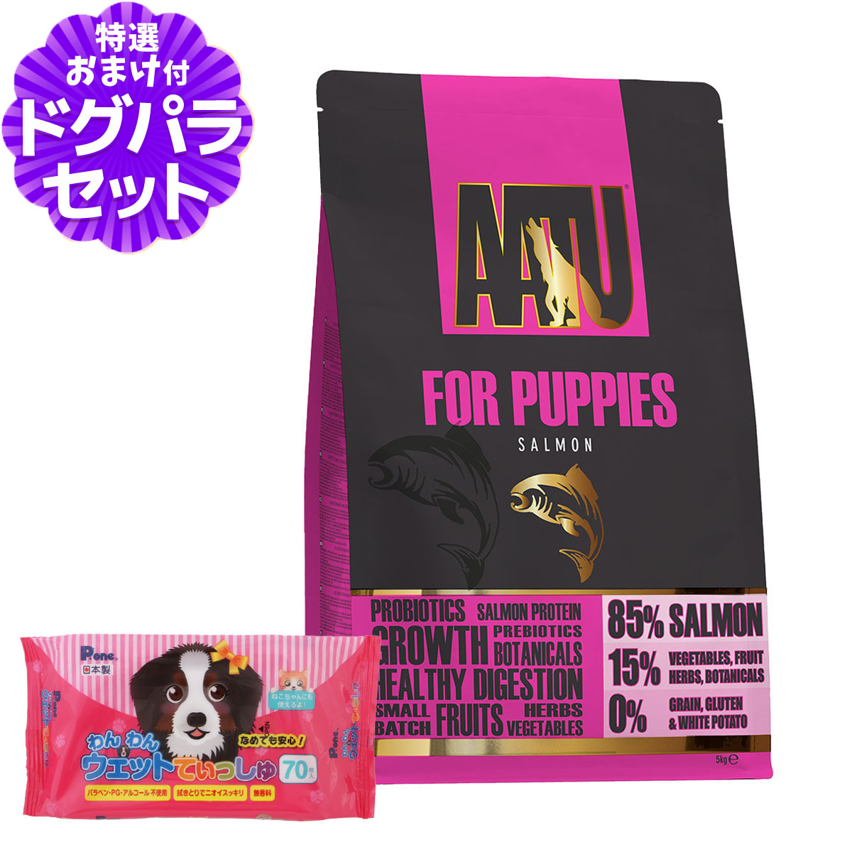 AATU(アートゥー) ドッグフード パピー サーモン 5kg+わんわんウエットてぃっしゅ 1個AATU ドッグフードの解説 上質な肉食ダイエットを好む愛犬のために肉(魚)80%と20%の野菜、フルーツ、ハーブ、植物由来原料をふんだんに使用した100%ナチュラルなグレインフリー(穀物不使用)ドッグフードです。 AATU ドッグフードの詳細 対象 犬用 AATU (アートゥー)パピーについて ・シングルプロテイン - 動物性タンパク源をサーモンに限定 ・サーモン 85%、野菜・フルーツ・ハーブ&スパイス 15% - 主原料に新鮮なサーモン生肉使用 ・スーパー8 (野菜 8種類、フルーツ 8種類、ハーブ 8種類、スパイス・植物由来原料 8種類) ・グレインフリー(穀物不使用) ・グルテンフリー ・ジャガイモ不使用 その他 ■パッケージ・内容成分などは予告なく変更になることがございます。ご了承くださいませ。※当店の商品は全て正規品です。安心してお買い求めください。 犬/ドッグフード/穀物不使用/サーモン/野菜/フルーツ/子犬/仔犬 ¥13,530 |