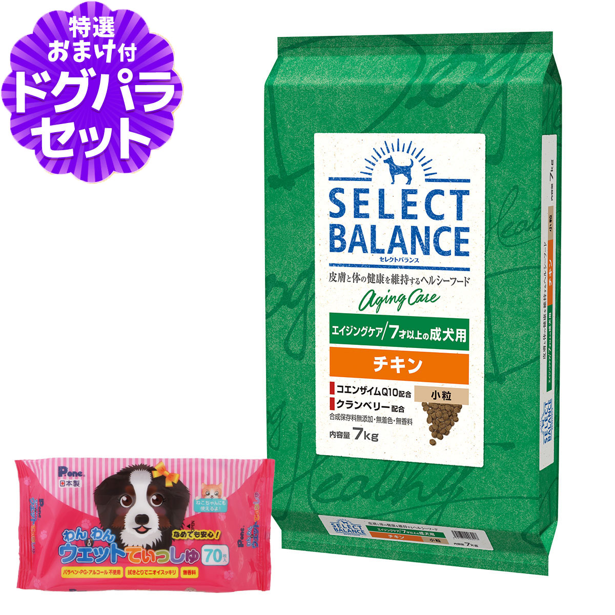 セレクトバランス ドッグフード エイジングチキン 小粒7kg+わんわんウエットてぃっしゅ 1個セレクトバランス エイジングケア チキン 小粒 ドッグフード の解説 7才以上の成犬に必要な栄養をバランスよく含み、抗酸化成分が健康を維持し、愛犬の活力のある毎日をサポートします。健康な関節を維持するために、グルコサミン・コンドロイチンを配合。セレクトバランス エイジングケア チキン 小粒 ドッグフード の詳細対象7才以上の成犬用セレクトバランス エイジングケア チキン 小粒 ドッグフード について・低脂肪のヘルシーフード。・ポリフェノールを多く含むクランベリーが尿のpHを調整し、下部尿路の健康を維持。・食物アレルギーに配慮。・皮膚や被毛の健康維持のために、オメガ6脂肪酸・オメガ3脂肪酸と亜鉛を含んでいます。セレクトバランス/エイジングケア/チキン/鶏/シニア犬/高齢犬/コエンザイムQ10 ¥10,340 |